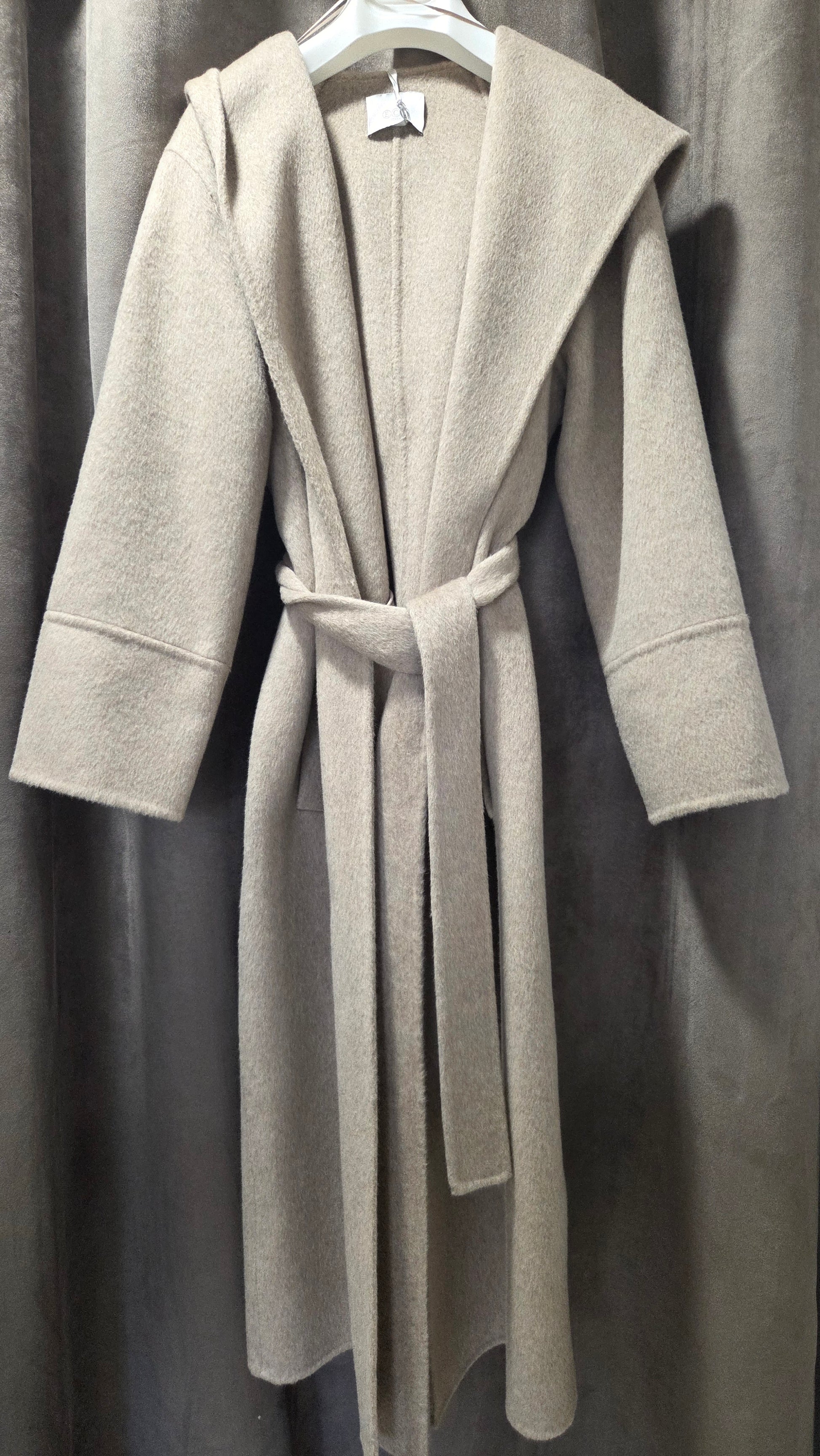 Cappotto in stile Max Mara, con cappuccio e fusciacca. Lungo e con tasche ampie, 70% lana!