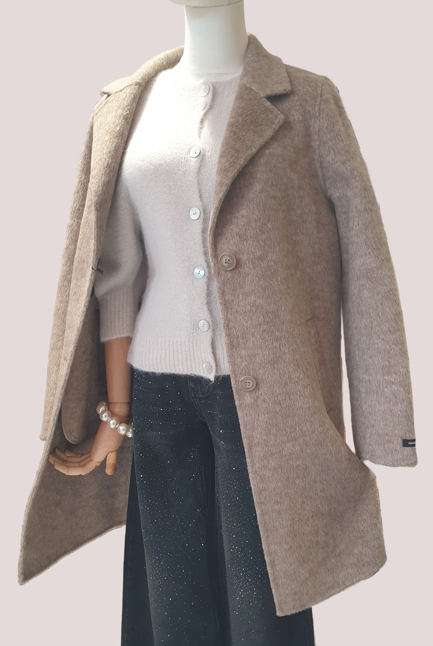Novità 2025! Cappottino sfoderato 50% lana, panno morbidissimo, leggermente sfiancato, reverse ampio, abbottonatura a 2 bottoni. Tasche ampie e utilizzabili