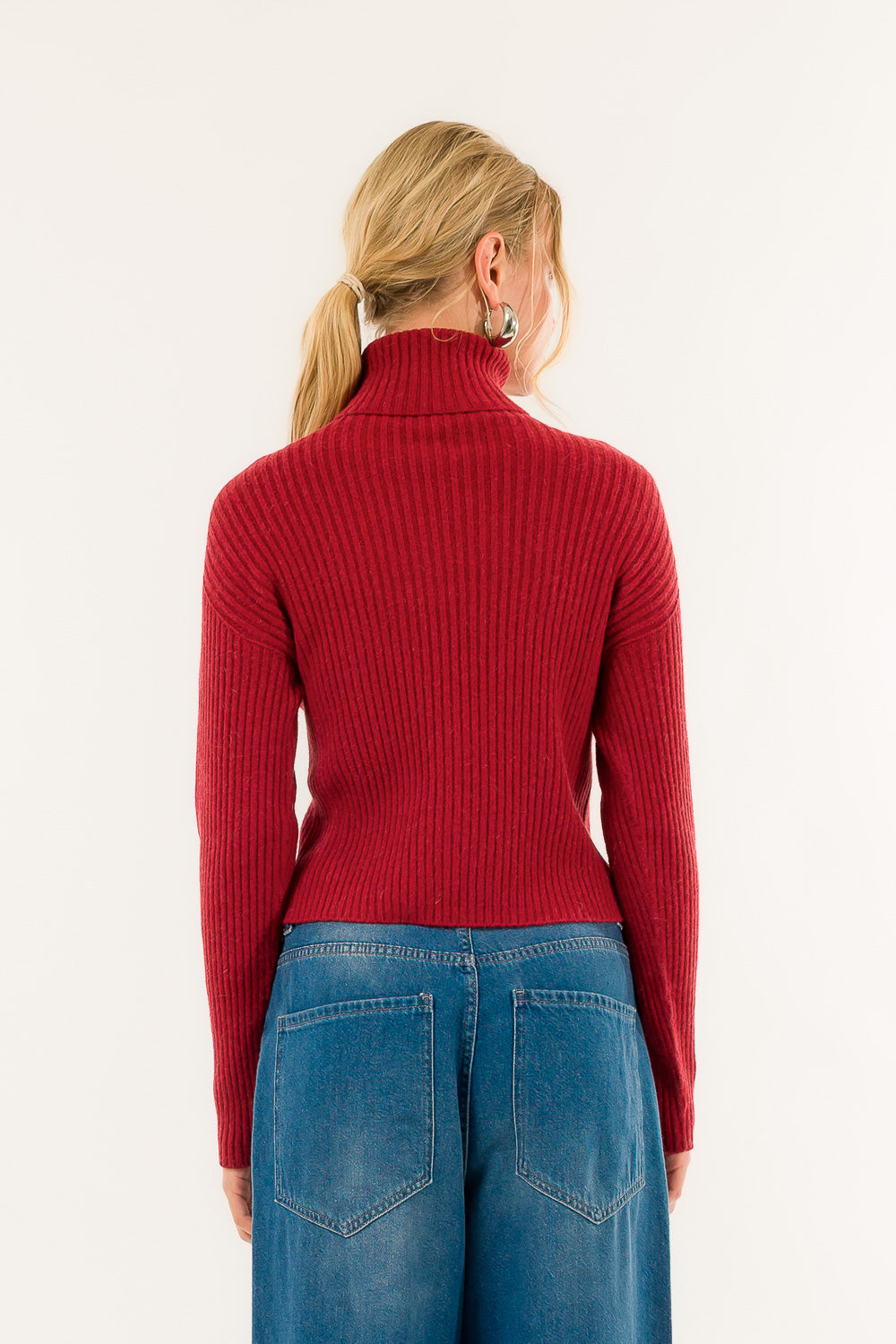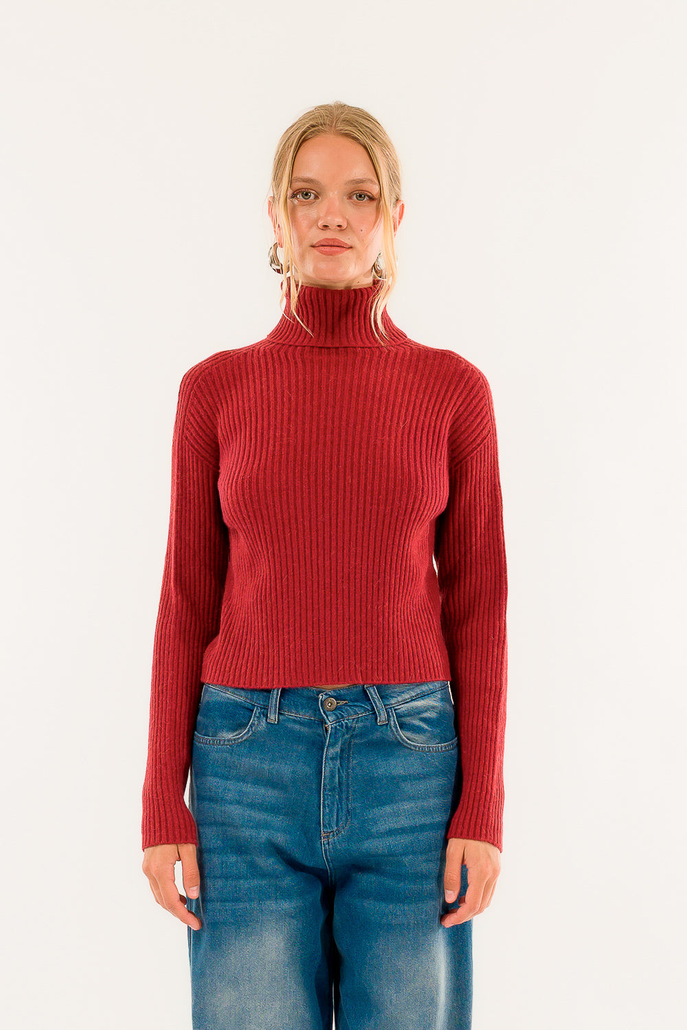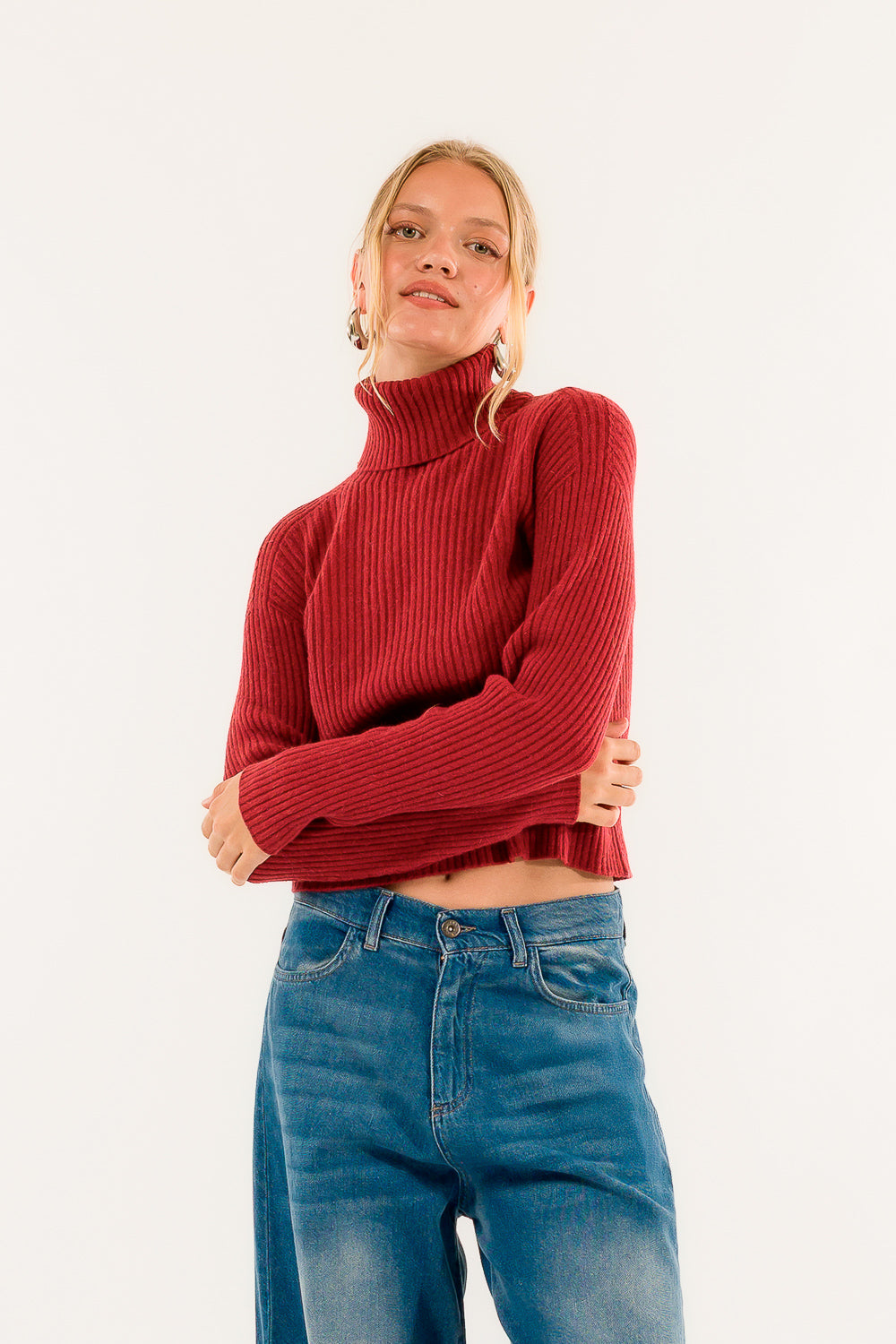 Novità 2025! Dolcevita dal taglio leggermente crop, misto lana e a costine. Manica regolare, vestibilità aderente, caldissimo, morbidissimo