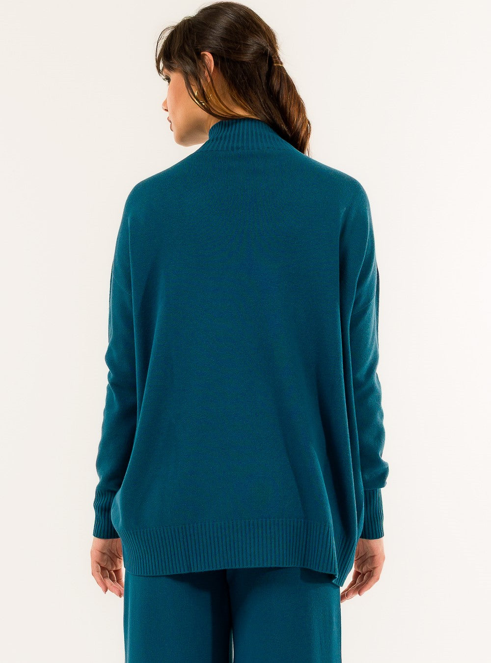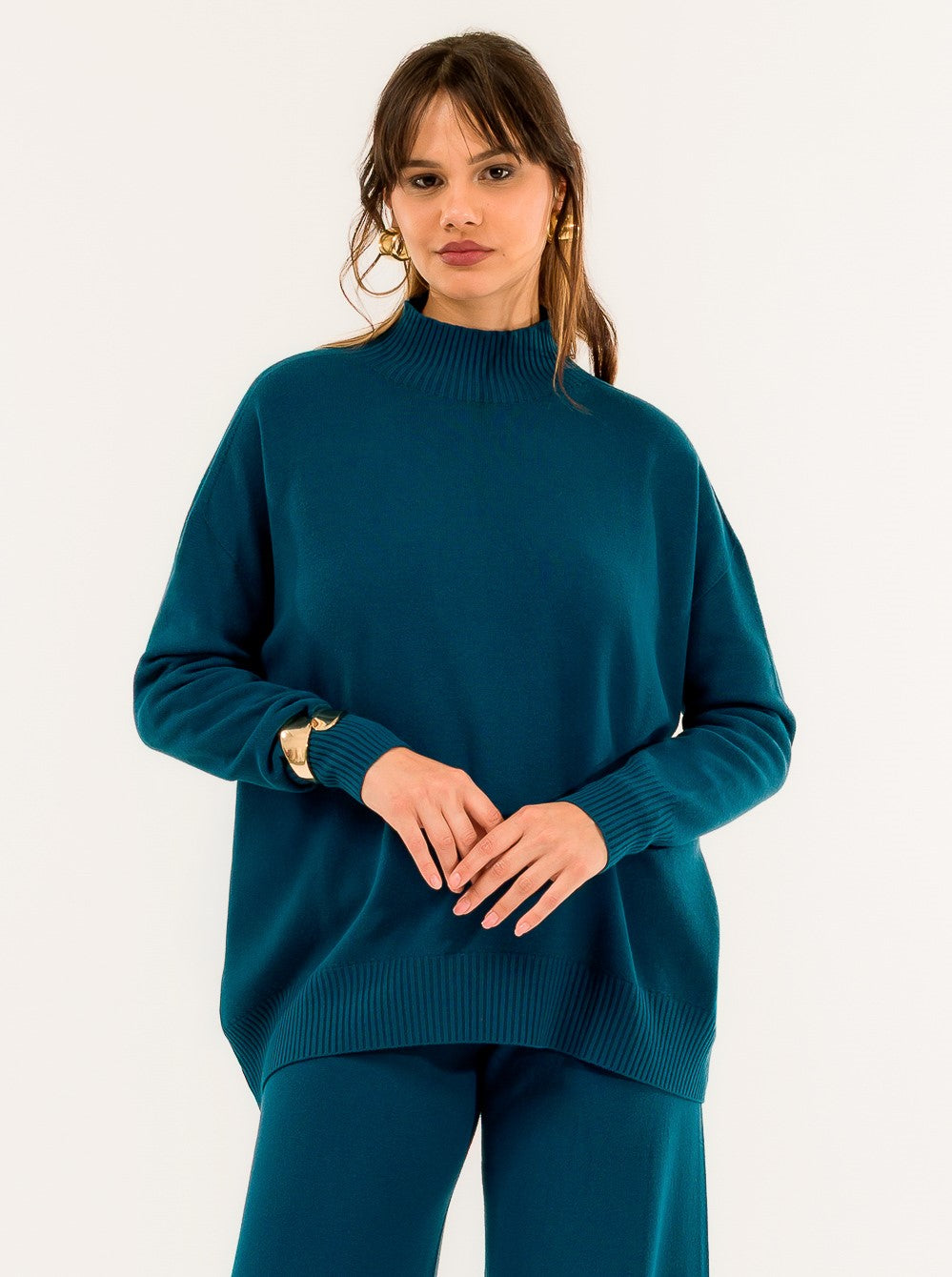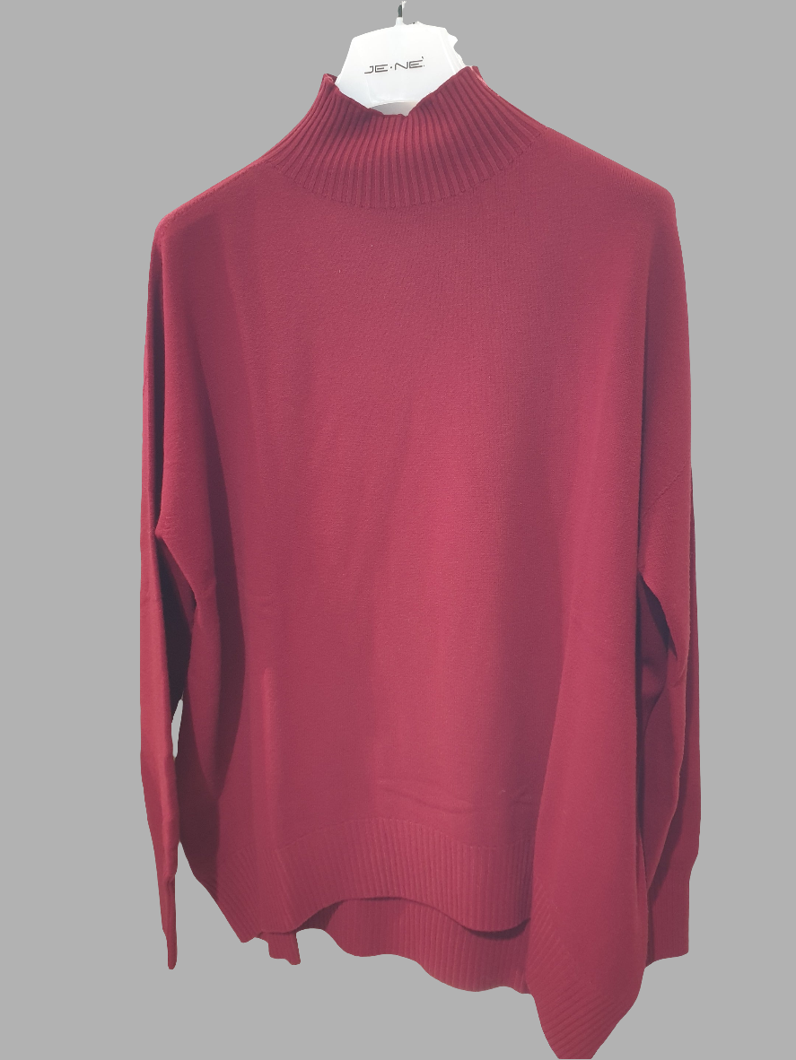 Maglia in viscosa doppiata, vestibilità morbida, collo a lupetto costine, manica lunga con polsino a cannolè