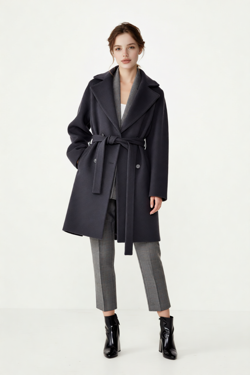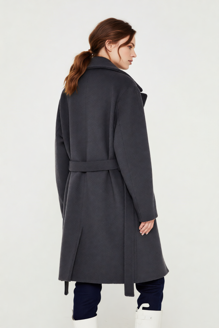 Cappotto doppio petto con fusciacca in aggiunta. Ampio reverse, tasche apribili, ampio reverse, foderato internamente. Molto caldo grazie ad un panno spesso e morbido, vestibilità regular